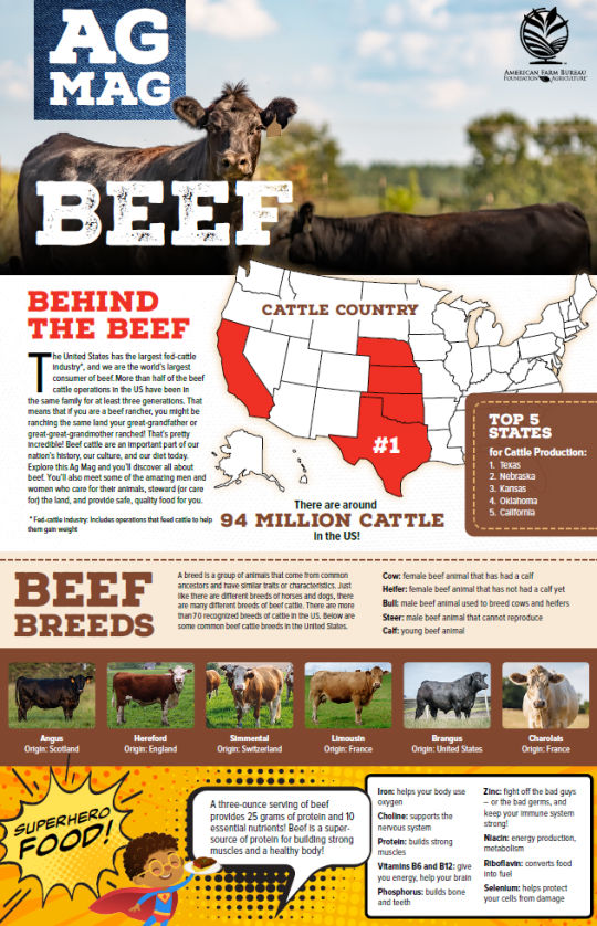 Updated in 2025! The beef ag mag is a perfect non-fiction text for grades 3-5. Includes sections on beef breeds, nutrition, beef life cycle, career profiles, food safety, label reading information, and other suggested activities.
